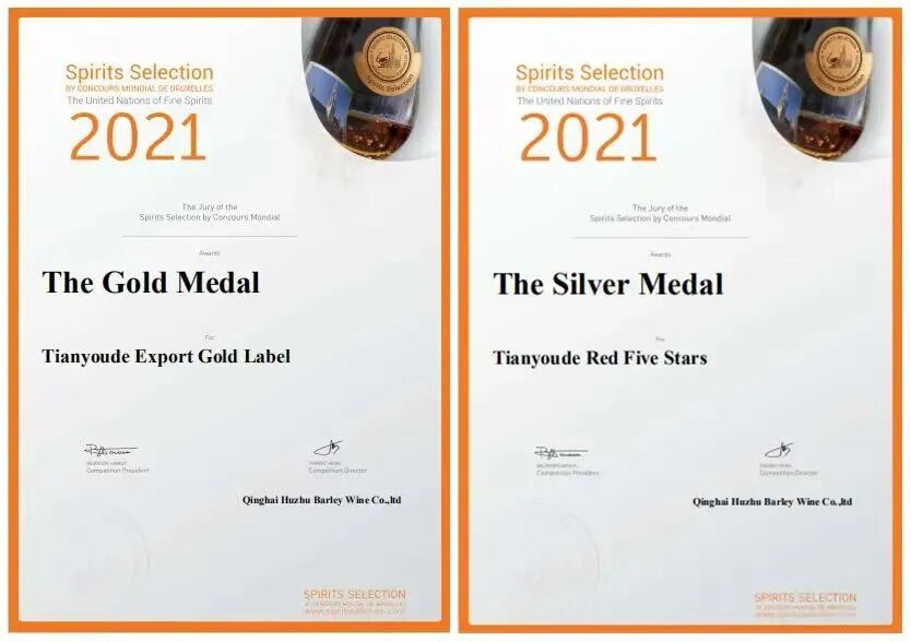 第22届比利时布鲁塞尔国际烈性酒大赛中天佑德出口型-金标与红五星一举夺得大赛金奖和银奖。受访者供图