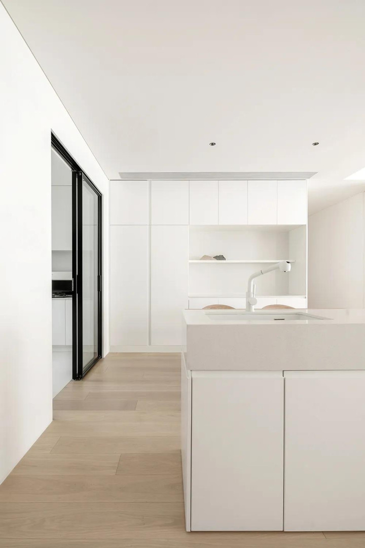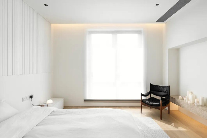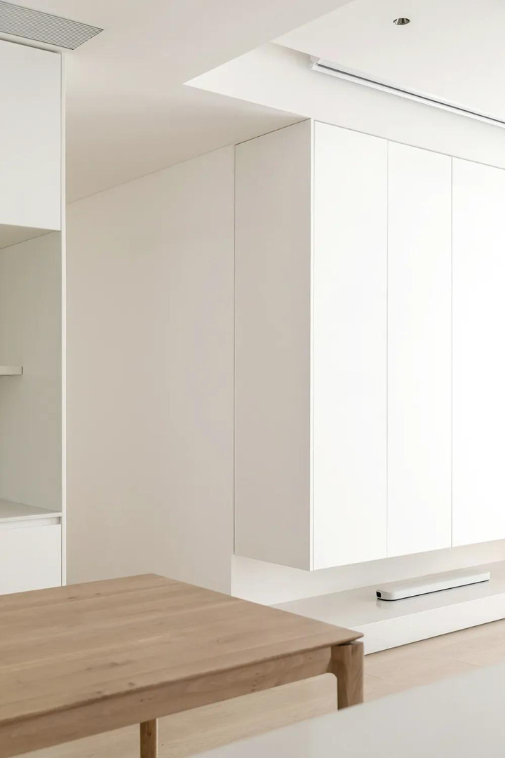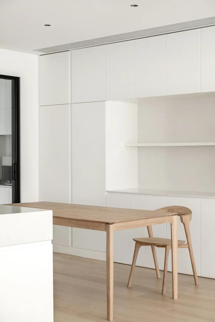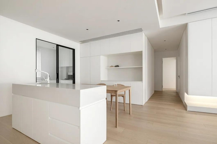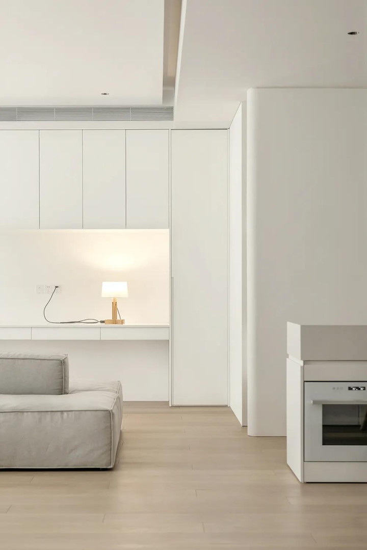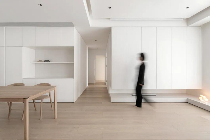 由OYTTdesign公司设计的上海146平米极简公寓。在纯净的白色调框架下,室内一切宛如在悠然的诗行中安详存在。白色之上,生活的画卷涂抹着各自独特的色彩,而软硬装饰在白色的映衬中,呈现出一份宁静而纯粹的美。