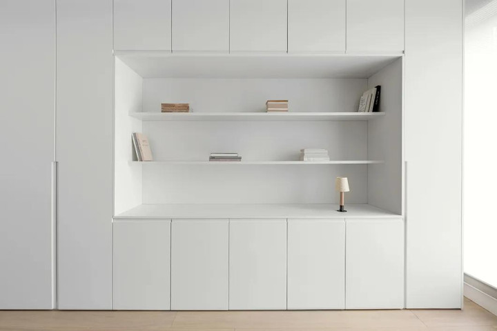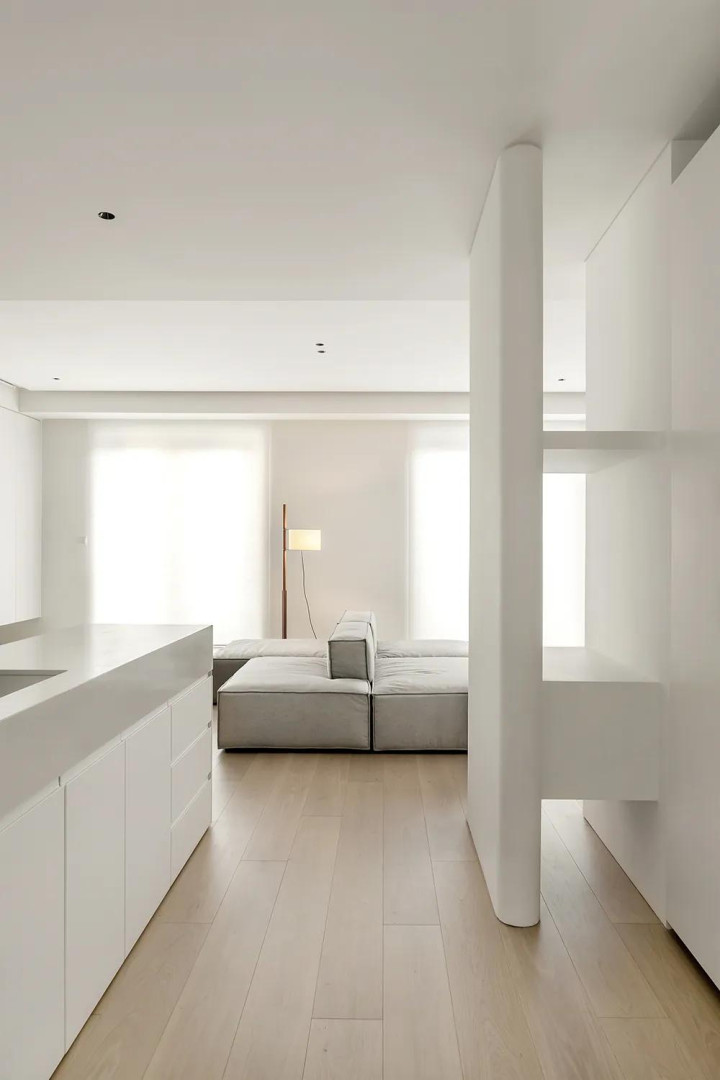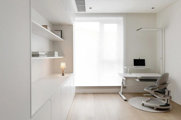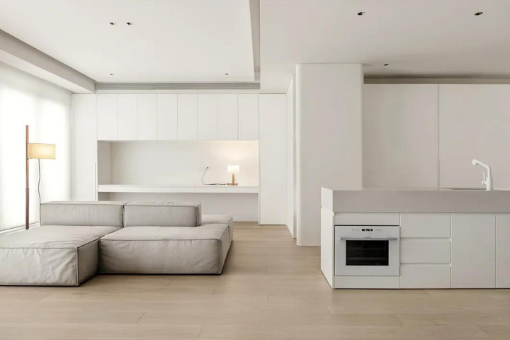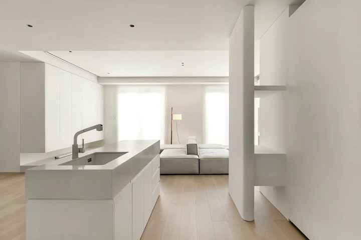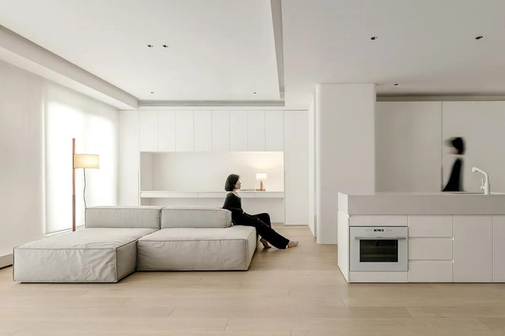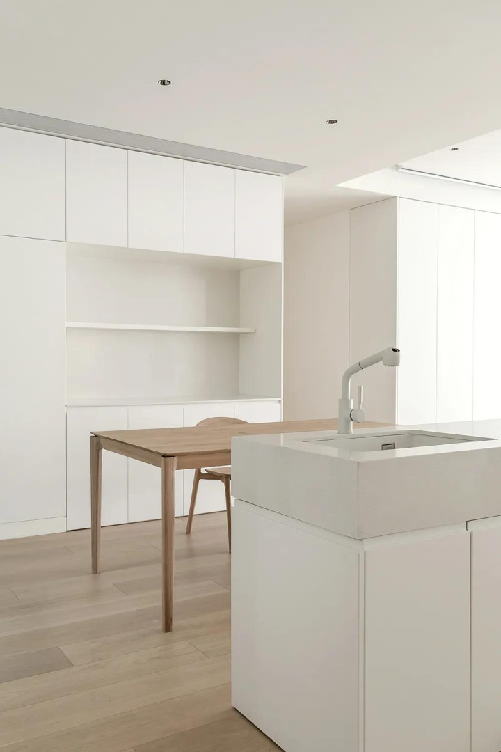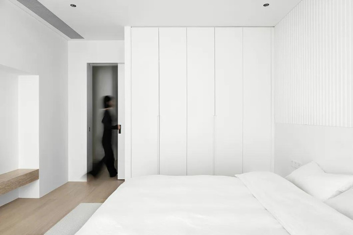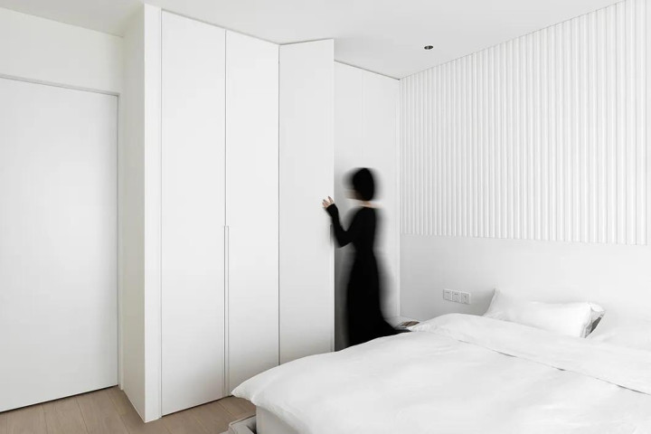 由OYTTdesign公司设计的上海146平米极简公寓。在纯净的白色调框架下,室内一切宛如在悠然的诗行中安详存在。白色之上,生活的画卷涂抹着各自独特的色彩,而软硬装饰在白色的映衬中,呈现出一份宁静而纯粹的美。